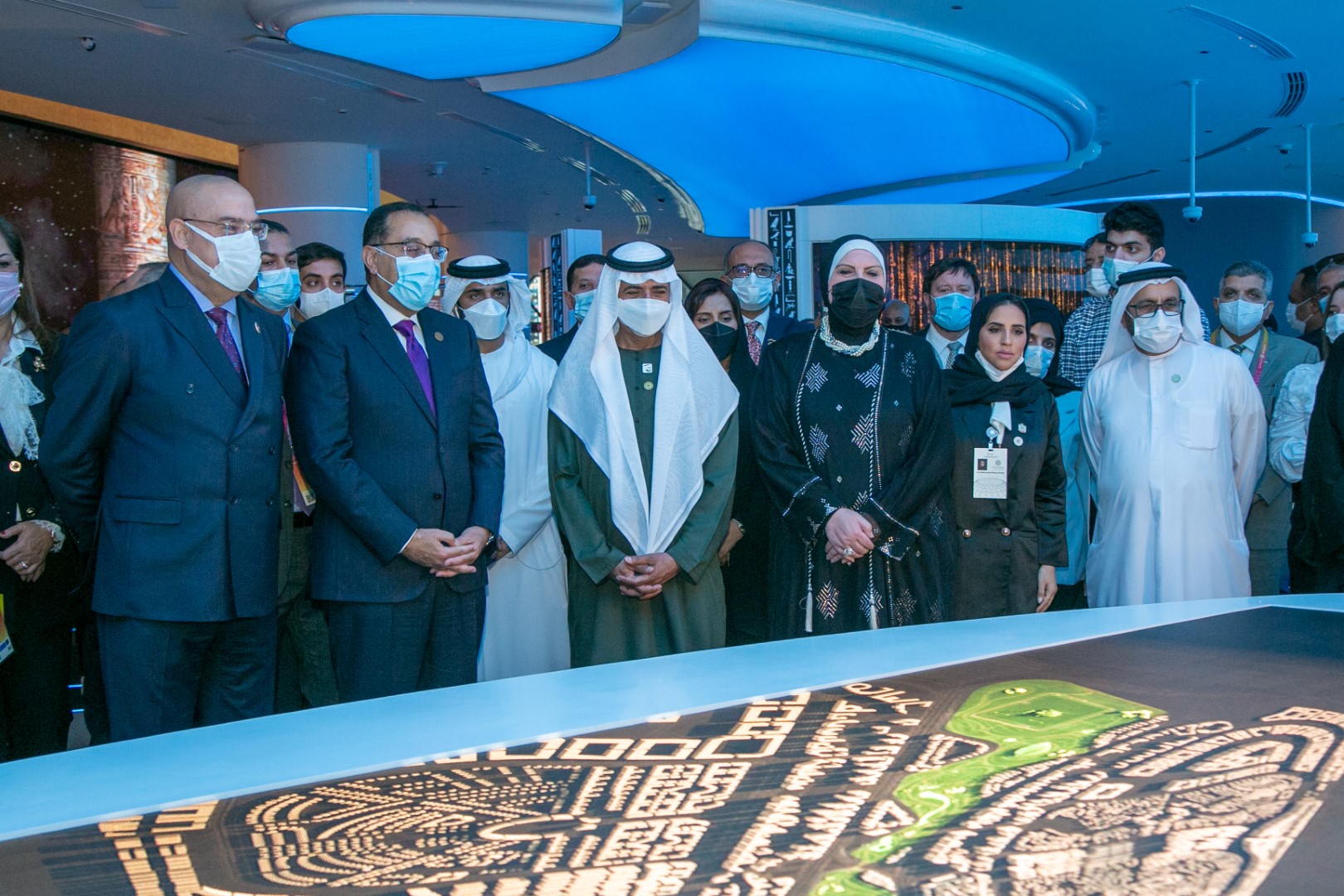 واستعرض رئيس الوزراء المصري، محتويات جناح بلاده، وأبرزها تابوت الكاهن المصري«بسماتيك»، الذي اكتشف مؤخراً في منطقة سقارة المصرية، كما استعرض المشاريع التي تعرض في الجناح ومنها المشاريع العملاقة للبنية التحتية والصناعات المتطورة والنقل والطرقات والمدن الجديدة والطاقة المتجددة وغيرها، لافتاً إلى سعي مصر للوصول إلى التنمية المستدامة ورفع جودة الحياة من خلال الاهتمام بالصحة والتعليم وتمكين المرأة وتشجيع الشباب والاهتمام بذوي الهمم.