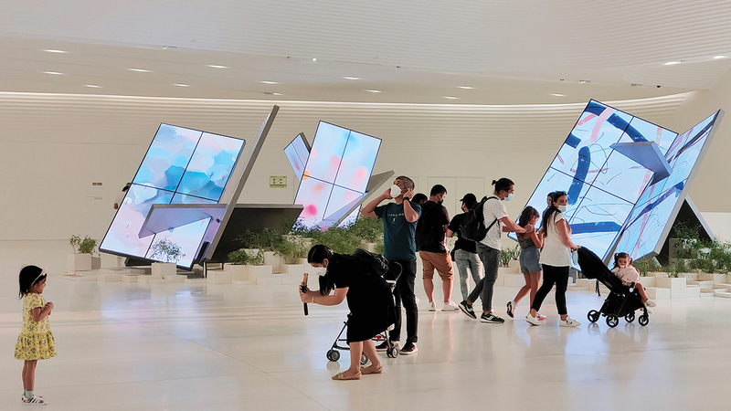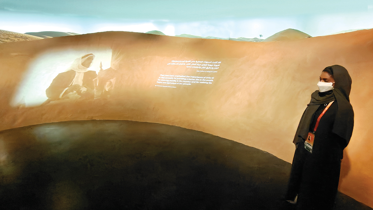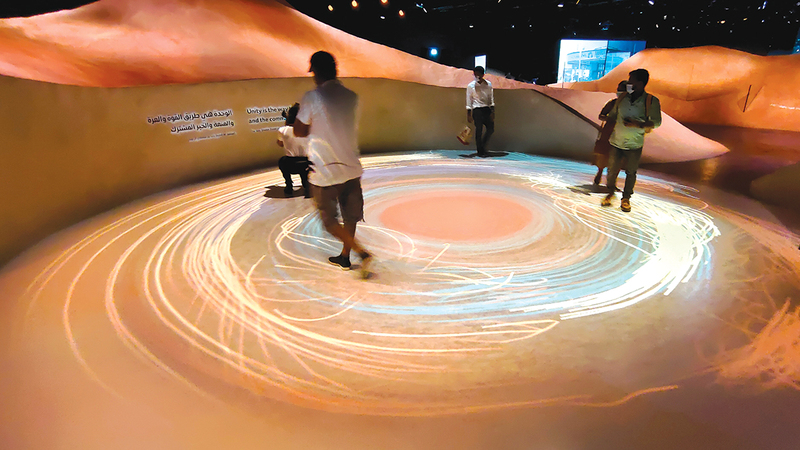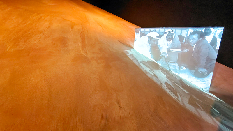 بين محطات الماضي الأصيل والحاضر الزاهي والمستقبل أيضاً يصحب الجناح الإماراتي ضيوفه، بداية من رمال حقيقية من الصحراء القاحلة والتحديات التي واجهها الآباء المؤسسون والأجداد وكافحوا لتذليلها في ظلال أشجار الغاف، مروراً بحاضر «إمارات الخير» التي أصبحت بمثابة جنة خضراء ووطن للجميع، وصولاً إلى الرهان على المستقبل حيث خطط وطموحات الدولة للـ50 عاماً المقبلة التي هي أبعد من الفضاء والمريخ الذي وصلت إليه الإمارات بـ«مسبار الأمل».