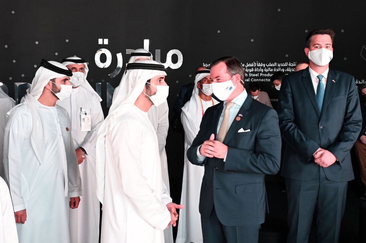 إلى ذلك، قام سمو الشيخ حمدان بن محمد والأمير غيوم بتفقد جناح لوكسمبورغ المقام في منطقة الفرص، تحت شعار "لوكسمبورغ المتعددة الموارد"، بما يعكس نهج التطوير الدائم والقائم على الاستفادة من الموارد الطبيعية والبشرية الكبيرة التي تتمتع بها لوكسمبورغ، كذلك مقومات التميز التي تتمتع بها في المجالات الصناعية والمالية، علاوة على التركيز على قطاعات الأبحاث والتقنيات الرقمية وعلوم وصناعات الفضاء.