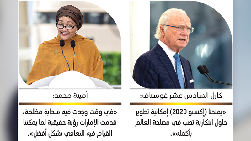 وقال ملك السويد، الملك كارل السادس عشر غوستاف: «يمنحنا (إكسبو 2020) إمكانية تطوير حلول ابتكارية لا تصب في مصلحة دولتنا فحسب، بل في مصلحة السوق العالمية والعالم بأكمله. إنه فرصة حقيقية للإبداع المشترك، والابتكار».