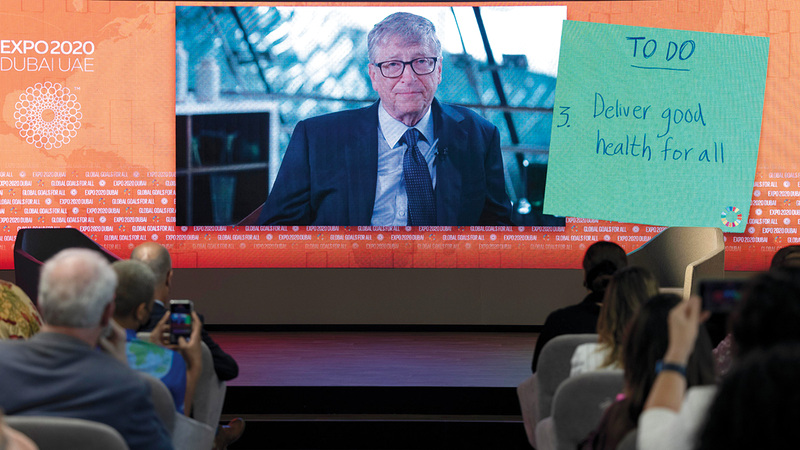 وقال غيتس في كلمته: «إذا كنا نريد أن نصل إلى تحقيق الأهداف العالمية بطريقة حاسمة بحلول عام 2030، فنحن بحاجة لجعل عام 2022 وكل الأعوام التي ستأتي بعده، أعواماً للعمل الجاد، كما يجب أن تتولى الحكومات والمؤسسات الخيرية والمؤسسات غير الربحية والقطاع الخاص هذا الأمر، وعلينا الالتزام أيضاً بالعمل الجاد معاً لتحقيق أهداف التنمية المستدامة خلال السنوات الـ8 المتبقية».