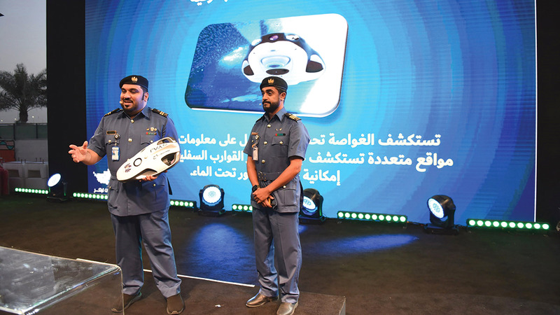 واستعرض ضابط أول تفتيش نواف صالح، وضابط تفتيش في جمارك دبي سالم غيث، مميزات الغواصة الجمركية المبتكرة وكيفية التحكم بها لتصوير بدن السفن والوصول إلى مناطق يصعب الوصول إليها، لأن لديها القدرة على الغوص مسافة 98 قدماً ومزوّدة بكاميرا 4K عالية الدقة تمكن المفتشين من إرسال بث حي لغرف العمليات لاكتشاف المواد الممنوعة والمحظورة التي يتم تهريبها في بدن السفينة الخارجي.