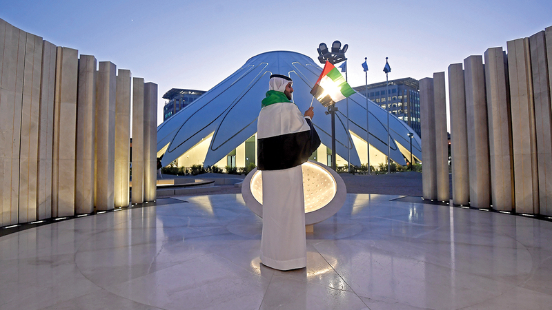 احتفى «إكسبو 2020 دبي»، أمس، بيوم العَلَم، الذي يمثل رمزاً لاتحاد دولة الإمارات وما حققته من إنجازات ونجاحات في مختلف المجالات. وحمل زوار المعرض، مواطنين ومقيمن، علم الدولة الذي يُشكل رمزاً للعزّة والفخر، وحرصوا على التقاط الصور التذكارية لهذه المناسبة الغالية على قلوب الجميع.
