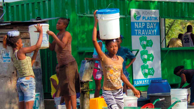 يمكن لإعادة تدوير العبوات البلاستيكية في هايتي أن توفر الرسوم المطلوبة لإرسال طفل إلى المدرسة، أو تأمين المتطلبات الأساسية للعيش، فبالنسبة لواحد من أفقر البلدان في العالم - وفقاً للأمم المتحدة - أصبحت إعادة تدوير البلاستيك مرادفاً لمعالجة قضايا الفقر.
