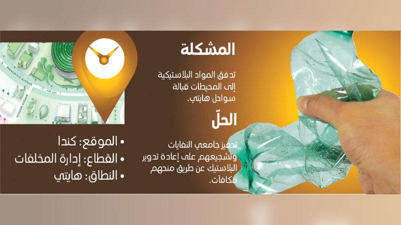 وتعمل شركة «بنك البلاستيك» الكندية، إحدى الشركات التي تأهلت لبرنامج «إكسبو لايف» للابتكار والشراكة الدولي من «إكسبو 2020 دبي»، لإحداث ثورة في أنظمة إعادة التدوير في العالم، لخلق اقتصاد بلاستيكي متجدد وشامل ودائري، ففي هايتي تجمع النفايات البلاستيكية من قبل السكان المحليين لبيعها لعلامات تجارية عالمية، لإعادة تدويرها واستخدامها.