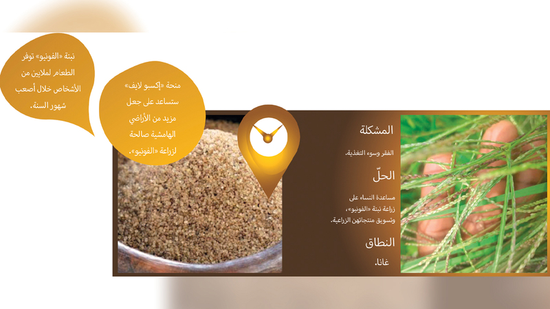 وستساعد منحة «إكسبو لايف» عبدولاي على جعل مزيد من الأراضي الهامشية صالحة لزراعة «الفونيو» ولإنبات محاصيل مربحة أخرى.