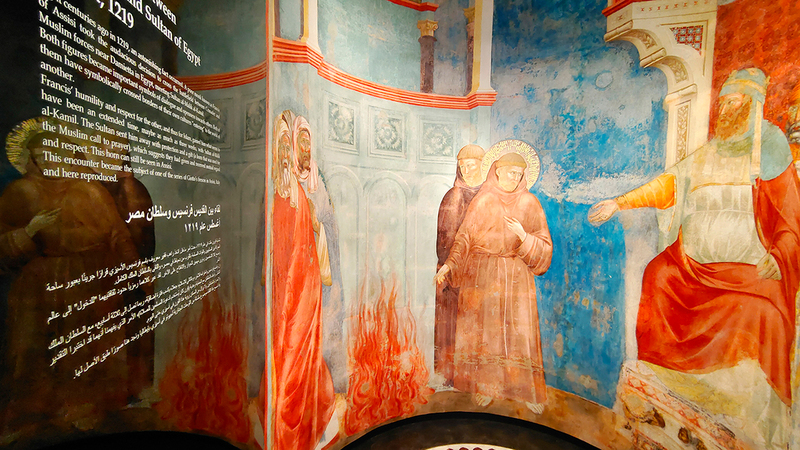 وأضاف الأب إلياس: «من المعروضات الأثرية أيضاً في الجناح، لوحة تعود إلى عام 1216 للقديس فرنسيس، خلال لقائه سلطان مصر، الملك الكامل».