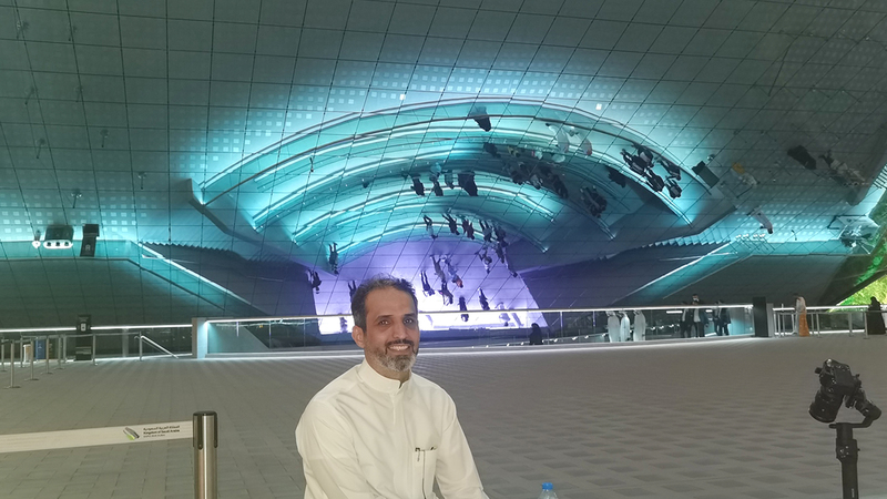 وقال عبدالله التركي إن التصميم مبهر بكل المقاييس، ويعبر عن قفزة حقيقية إلى مستقبل واعد، فضلاً عن استخدام تقنيات متطورة في عرض الإرث العريق للمملكة، والانتقال بشكل رائع بين المراحل التي يشملها الجناح.