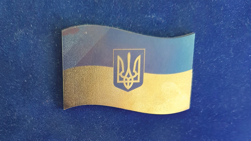 ويمثل الشعار (تريزوب)، الذي يقف على مدخل البوابة الخارجية لجناح أوكرانيا في «إكسبو 2020»، رمحاً ثلاثي الشعب، حمل «برج خليفة»، و«برج العرب»، بدلاً من رأسيه الأوسط والأيسر. كما يضم مجسماً يرمز إلى التقدم التقني في علوم الصناعة والفضاء والذكاء الاصطناعي.