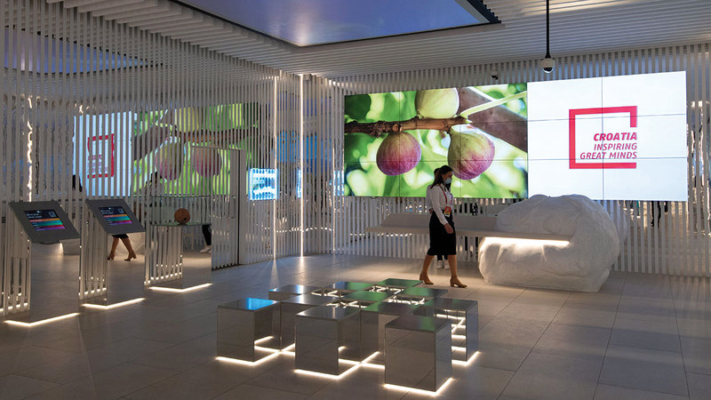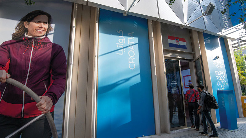 وتستعرض كرواتيا، التي تقع في منطقة جنوب شرق أوروبا، إلى الجانب الشرقي من البحر الأدرياتيكي، عبر جناحها في «إكسبو»، شاشات ضخمة تتضمن مقاطع فيديو لأبرز المدن والجزر التي تتضمنها الدولة، والقلاع التاريخية بأشكالها التي تتداخل مع الطبيعة وتكسوها النباتات الخضراء من مختلف جوانبها، مع سرد أبرز المعلومات عن تاريخ الدولة والقلاع التي ترمز لها، إضافة إلى المناظر الطبيعية الخلابة للجبال والشواطئ والمحميات الطبيعية.