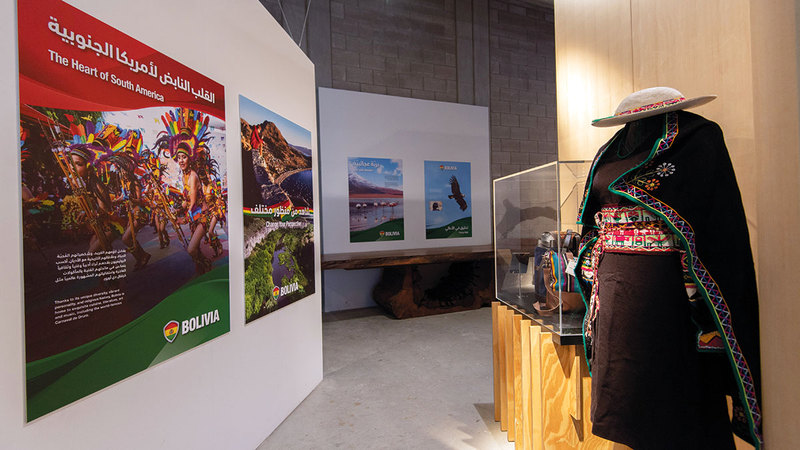 وتحت عنوان «النقيض ونقيضه في بوليفيا»، يعرض الجناح التنوع الجغرافي الفريد الذي يتمثل في أودية وسهول حارة وقاحلة، تعلوها قمم جبال الأنديز المغطاة بالثلوج، وهي بيئة تجذب سياح المغامرات.