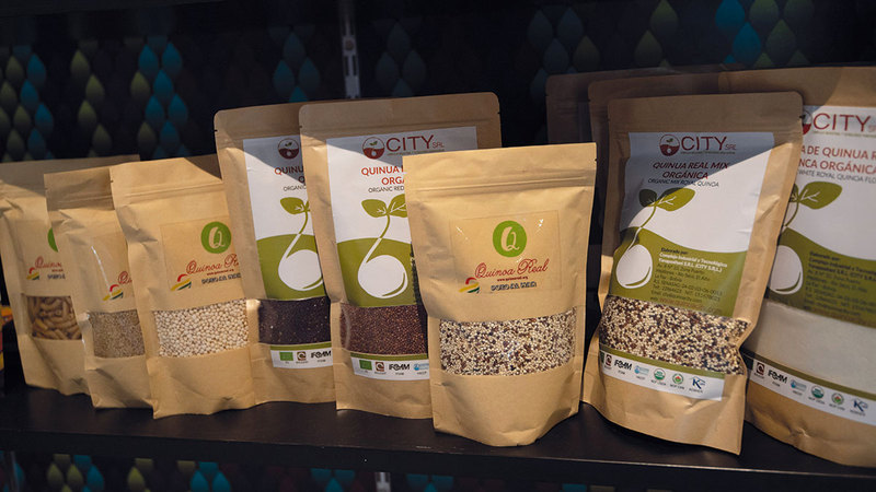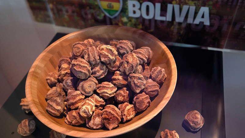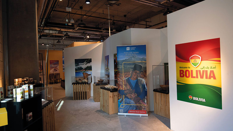 ويعرض الجناح كذلك جانباً من نمط الغذاء المستدام منذ آلاف السنين في بوليفيا، ويتمثل في «الكينوا»، وهي من الأطعمة ذات القيمة الغذائية الفائقة، وتتبوأ منذ 5000 عام موقعاً أساسياً على المائدة البوليفية، التي تستوطن السهول العليا من هضبة جبال الأنديز.