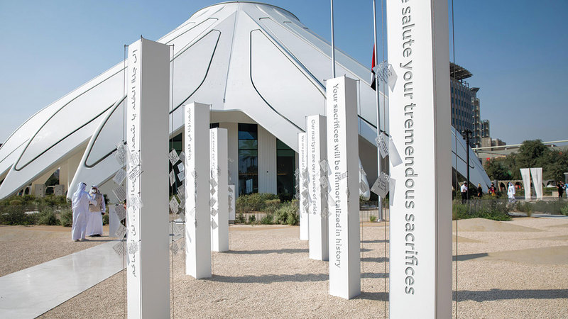 احتفى جناح الإمارات في «إكسبو 2020 دبي» بيوم الشهيد، إجلالاً لتضحيات شهداء دولة الإمارات العربية المتحدة، وتقديراً لأسرهم وما قدّموه من نموذجٍ مشرّف، حيث أقيمت المراسم الخاصة عند النصب التذكاري «لأهل الفخر»، وجرى تنكيس العلم عند الثامنة صباحاً.