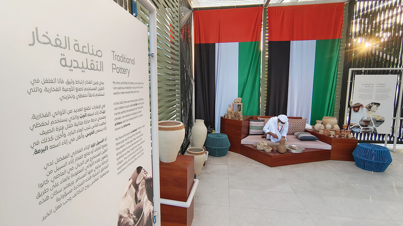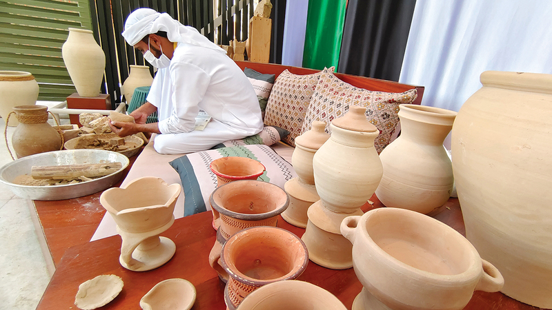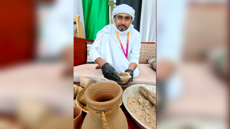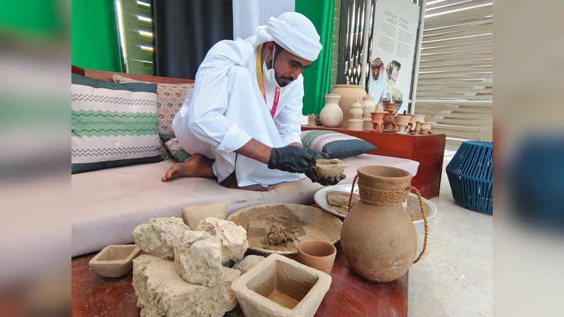 خصص جناح «صميم» ركن صناعة الفخار ضمن قطاع المنازل والحياة الجبلية بالإمارات قديماً.
