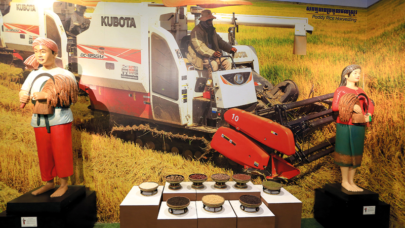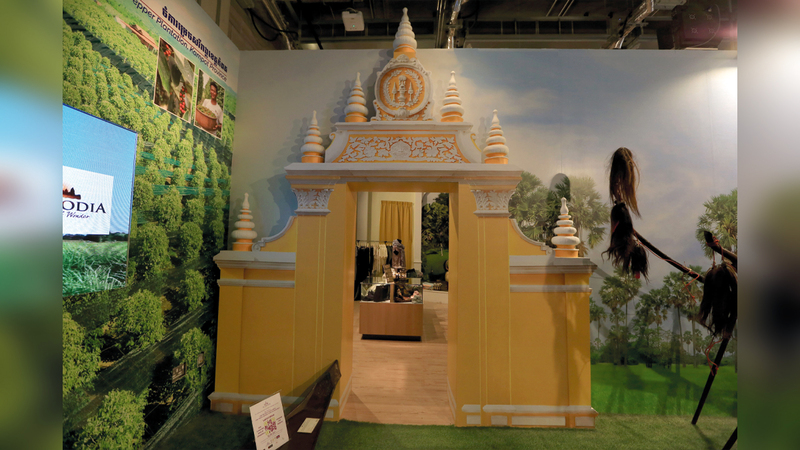 ويختتم الزائر جولته بجناح كمبوديا في قسم التراث الذي يتضمن نماذج ومجسمات من الأدوات التي يستخدمها الفلاح الكمبودي في الزراعة، وأهم المحاصيل التي تنتجها المملكة. كما يسلّط الضوء على أشهر الصناعات التراثية، مثل حكاية أغلى رداء من نوعه في العالم، وهو مقصب من الحرير المنسوج من الذهب، يشغله يدوياً نساجون محترفون، وكان مخصصاً للملكات والأميرات وعلية القوم، ويقدر ثمن القطعة منه حالياً بـ10 آلاف دولار.