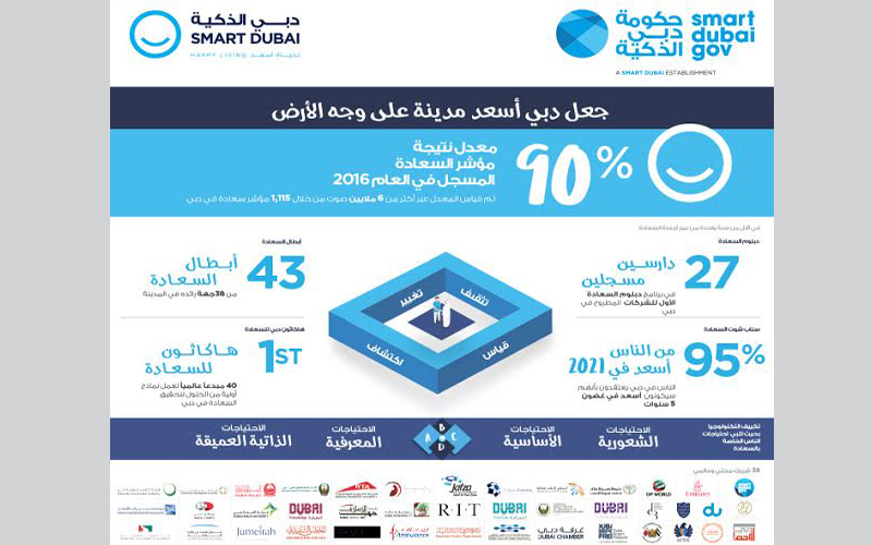 وأضافت: "ندعم في دبي الذكية عملية التحوّل الذكي لدبي مصوّبين اهتمامنا نحو تحقيق السعادة لقاطنيها انطلاقاً من رؤية صاحب السمو الشيخ محمد بن راشد آل مكتوم نائب رئيس الدولة رئيس مجلس الوزراء حاكم دبي. من خلال تبّني منهجية علمية عالمية، تقيس مستوى السعادة في كافة أرجاء المدينة، وتؤثر إيجاباً فيها وتعمل على تحقيق استدامتها  ويتمثل هدف أجندة السعادة في زيادة مستوى السعادة في دبي من 89% إلى 95% بحلول العام 2021".