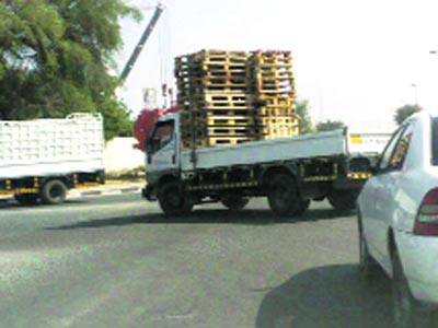 وضع سائق حمولة زائدة فوق مركبته معرضاً حياته وحياة الآخرين للخطر، في حال سقوطها، ولذا يتعين على الجهات المعنية فرض غرامات على أمثال هؤلاء السائقين المخالفين لمنعهم من تكرار ذلك مستقبلاً.