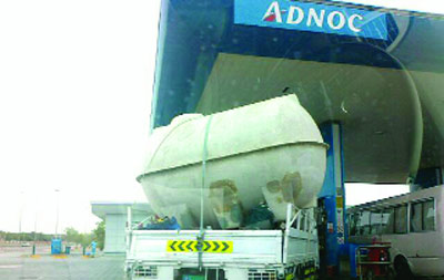 ثبت سائق خزان ماء في صندوق مركبته، بواسطة حبل، متجاهلاً مدى الخطر الذي يهدد مستخدمي الطريق في حال تسبب طارئ ما في سقوط الخزان.