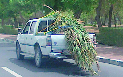 وضع سائق مركبة في العين كمية من سعف النخيل في الصندوق الخلفي لسيارته، وهي معرضة للسقوط على الطريق، وتالياً تعتبر حمولة خطرة، ما يؤدي إلى وقوع حوادث، لذا يتعين على الجهات المعنية رقابة الطرق وفرض غرامات على المخالفين لمنعهم من تكرار ذلك مستقبلاً.
