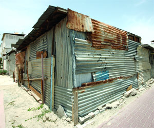 تعيش مريم وعائلتها المكونة من زوجها وأبنائها الأربعة في بيت من صفيح أو ما يعرف بالـ «صندقة»، نصبت جدرانها وسقفها من ألواح «التشينكو» منذ أكثر من 25 عاماً، وذلك بعد أن باءت كل محاولاتها للحصول على مسكن لائق بالفشل، وعلى الرغم من حصولها على منحة أرض منذ عام 1994 فإنها لم تتمكن من استكمال البناء نتيجة رفض طلبها بالحصول على قرض من مؤسسة محمد بن راشد للإسكان طوال 16 عاماً لتدني راتبها من وزارة الشؤون، على الرغم من ظروف العائلة المالية السيئة، بعد إنهاء خدمة زوجها منذ سنوات.