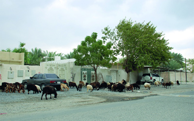 أغنام وخراف تجوب شوارع وطرقاً في مناطق سكنية في الامارات الشمالية، من دون راع يمنعها من الابتعاد عن القطيع، ما قد يعرضها لحوادث مرورية في حال اعترضت طريق سيارة مسرعة.
