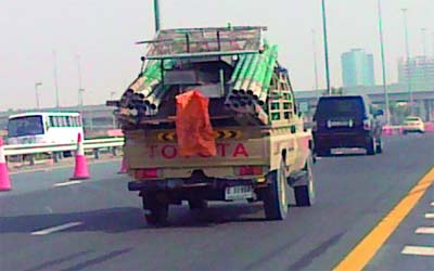 وضع سائق كمية كبيرة من المخلفات الحديدية في صندوق سيارته الخلفي، من دون أن يوفر وسائل عدم سقوطها على الطريق، وتعتبر هذه الحمولة خطرة ومن الممكن أن تسقط على الطريق وتتسبب في وقوع حوادث، لذا يتعين على الجهات المعنية مراقبة الطرق وفرض غرامات على المخالفين.