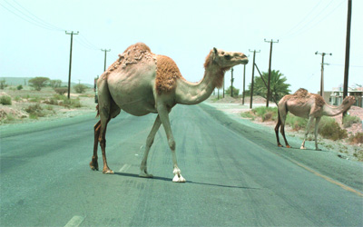جمل على أحد الشوارع الخارجية في رأس الخيمة. الإمارات اليوم