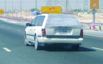 وضع سائق مركبة كيساً من البلاستيك بعد أن انكسر الزجاج الخلفي لسيارته، ما يحرمه من الرؤية الخلفية، إضافة إلى أن هذا المظهر غير حضاري، ولذا يتعين على الجهات المعنية في الدولة مضاعفة الغرامات على المخالفين لمنعهم