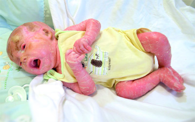 ووفقاً للدكتور خالد العطواني فإن هذا المرض نادر الحدوث يصيب طبقة الجلد الخارجي للمولود، فيقضي عليها، ما يسهم في الإضرار بصحة الطفل مع مرور الوقت.