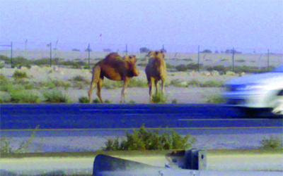 وضعت الأجهزة المعنية سياجاً عالياً لمنع الحيوانات السائبة من الوصول إلى طرق السريعة، ومع ذلك مازال هنال جمال تتسلل من فتحة في السياج وتعبر الطرق السريعة بصورة مفاجئة، ما يعرّض السائقين إلى الخطر، لذا يجب على الجهات المعنية ضرورة سد الفتحات التي تتسلل من خلالها الجِمال إلى الطرق، حرصاً على سلامة رواد الطريق.