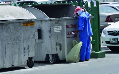 اعتاد عمالٌ البحث عن المعلبات الفارغة في حاويات القمامة لبيعها، وهذا السلوك غير حضاري، لذا يتعين على الجهات المعنية متابعة هؤلاء العمال ومخالفتهم، حفاظاً على صحة العمال والمظهر العام.