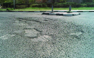 تعاني شوارع في منطقة الجاردنز في جبل علي بدبي وجود حفر منذ فترة طويلة، ما يؤدي إلى ارتباك السائقين الذين يستخدمونها، خصوصاً للمرة الأولى، وطالب سكان المسؤولين في الجهات المعنية بإعادة سفلتة الشوارع، حتى لا تشهد وقوع حوادث.