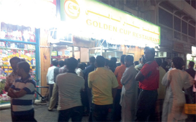 انتشرت في بعض الأسواق ظاهرة تجمعات كبيرة لشباب من دول آسيوية أمام واجهة محل تجاري، لمشاهدة تلفزيون يبث مباراة في رياضة الكريكيت أو فيلم هندي، وهذه الأعداد الكبيرة تعيق حركة المرور، وفي الصورة تجمع كبير من الاشخاص أمام أحد المطاعم في الشارقة، ما أدى إلى عرقلة حركة السير، لذا نناشد الجهات المعنية وضع حل لهذه الظاهرة غير الحضارية.