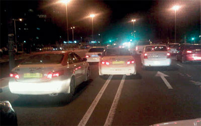 حاول سائق تاكسي تجاوز السيارة التي أمامه على أحد الطرق بمدينة ديسكفري غاردن، بطريقة خطأ يؤدي إلى حدوث ارتباك مروري، وتعريض حياة الركاب للخطر، لذا يتعين على الجهات المعنية تشديد الغرامات على مرتكبي هذه المخالفة، ومضاعفتها لسائقي التاكسي.