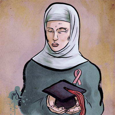 وتروي وفاء قصتها قائلة:«كنت أعيش مع والديّ في لبنان، ولكن توفيا نتيجة الحرب قبل 25 عاماً، بعد ذلك جئت إلى الدولة قبل سبع سنوات، وعشت مع أخي، وكان حلمي أن أكمل دراستي، وتالياً دخلت إلى المدرسة (منازل)، إلى أن حصلت على الثانوية العامة العام الماضي بنسبة 87٪، وكنت وقتها مصابة بسرطان الصدر، وصارعت المرض لمدة أربع سنوات إلى أن شفيت، بعدما كنت أخضع للعلاج في مستشفى توام».