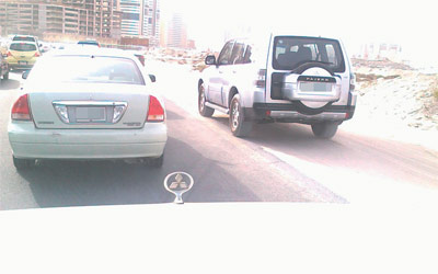 تجاوز سائقٌ المركبةَ التي تسير على يساره عبر السير على كتف الطريق، وهذا التجاوز خطأ ويعرّض حياة ركاب السيارتين للخطر، ولذا يتعين على الجهات المعنية تشديد الرقابة على الطرق وفرض غرامات على المخالفين.