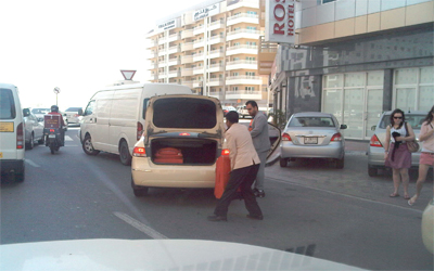 خالف سائق تاكسي قوانين المرور، وأوقف مركبته في منتصف الطريق، في منطقة البرشاء في دبي، ما أدى إلى ارتباك السيارات، وازدحام الشارع، لذا يتعين على السائقين الالتزام بقواعد المرور، حفاظاً على انسيابية الحركة، وعلى الجهات المعنية فرض غرامات على المخالفين لردعهم.