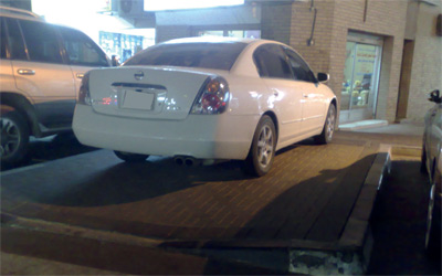 أوقف سائق هذه السيارة على الرصيف، في أحد الأسواق التجارية بأبوظبي، مستغلاً عدم وجود رقابة في المنطقة، من دون أن يهتمّ بحق المشاة في استخدام الطريق.