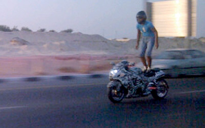 شاب يؤدي حركات خطرة باستخدام دراجته النارية، على شارع الإمارات في دبي ما يشكل خطراً على حياته وحياة الآخرين، لذا يتعين على الجهات المعنية تشديد الرقابة على الطرق، لوضع حد لهذه السلوكيات.