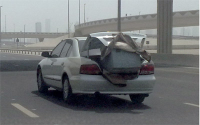 وضع سائق مركبة حمولة خطرة داخل صندوقها الخلفي، ما أدى لحجب الرؤية الخلفية عنه، فضلاً عن احتمال سقوطها على الطريق في أي لحظة، ما يؤدي لوقوع حوادث، وعلى الجهات المعنية تشديد الرقابة لفرض غرامات على المخالفين.