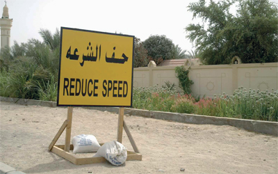وضعت لافتة إرشادية على أحد الطرق الداخلية بمنطقة نعمة في مدينة العين، تحث السائقين على تخفيف السرعة، ولكن اللوحة الإرشادية مملوءة بالأخطاء اللغوية التي جعلتها غير مفهومة، وبدلاً من كتابة خفف السرعة، كتب عليها «حف الشرعه»، فباتت غير ذات قيمة، ولا يفهمها سوى من يجيد اللغة الإنجليزية، لذا نناشد الجهات المعنية إعادة النظر في هذه اللوحة، والعمل على عدم تكرار مثل هذه الأخطاء التي تسيء إلى لغتنا العربية.