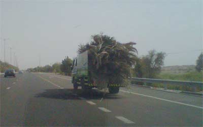 قاد سائقٌ مركبةً على الطريق وفي صندوقها الخلفي حمولة خطرة عبارة عن كمية كبيرة من سعف النخيل، من دون أن يغلق الصندوق من الخلف،ما يعرضها للسقوط، وتالياً من الممكن أن تؤدي إلى وقوع حوادث، ولذا يتعين على الجهات المعنية تكثيف الحملات المرورية على الطرق لفرض غرامات على المخالفين.