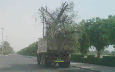 وضع سائق كمية كبيرة من جذوع الأشجار في صندوق المركبة الخلفي، ما يهدّد سقوطها على الطريق، وتالياً من الممكن أن يؤدي ذلك إلى وقوع حوادث خطرة، لذا يتعين على الجهات المعنية تشديد الرقابة على الطرق لفرض غرامات على المخالفين، حفاظاً على أرواح قائدي المركبات.