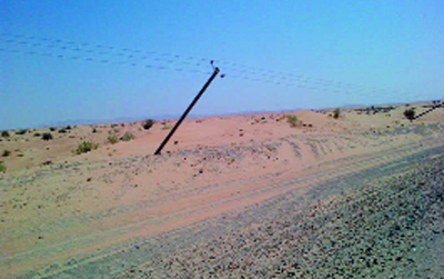 فوجئ مرتادو طريق (المدام - نزوى) بميل أعمدة الكهرباء، منذ نحو 10 أيام، بفعل الرياح الشديدة التي هبّت أخيراً، ووجود الأعمدة على هذا النحو، خصوصاً أنها محاذية للطريق، وحال سقوطها فإنها تُشكل خطراً كبيراً.