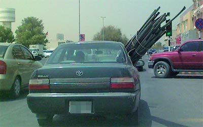 حوّل سائق سيارته الصغيرة إلى سيارة نقل (بيك آب)، فحملها بأنابيب بلاستيكية، متجاهلاً ما يمكن أن تسببه لسائقي المركبات الأخرى من إزعاج حال ملامستها لسياراتهم.
