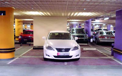 سائق ترك سيارته تحتل موقفين معاً، حائلاً دون استفادة المركبات الأخرى من الموقف الآخر.