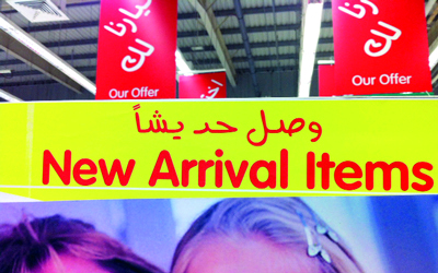 انتشرت الأخطاء اللغوية في المحال ومراكز التسوق في الآونة الخيرة، حتى إن أحد المراكز الشهيرة علق لافتة كبيرة مكتوباً عليها، «وصل حد يشاً»، وهي كتابة خاطئة لعبارة وصل حديثاً، لذا يجب على الجهات المعنية ضرورة التدقيق على مثل هذه الأخطاء التي تفسد اللغة العربية وتجعلها غير مفهومة، وتوقيع غرامات على غير الملتزمين، حرصاً على لغتنا الجميلة.