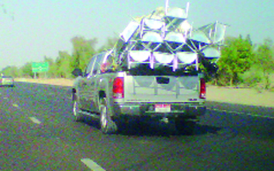 تبذل إدارات المرور في الدولة جهوداً كبيرة لتقليل الحوادث المرورية على الطرق، وعلى الرغم من ذلك لايزال هنال بعض سائقي النقل غير ملتزمين بشروط الأمن والسلامة، وينقلون حمولات أكبر من سعة المركبة، الأمر الذي يمثل خطراً على رواد الطريق، خصوصاً إذا سقطت هذه الحمولة أثناء السير، لذا يجب على الجهات المعنية تكثيف الحملات الإعلامية للسائقين، بهدف تثقيفهم بضرورة الالتزام بشروط الأمن والسلامة.