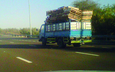 وضع سائق كمية كبيرة من الأخشاب في صندوق مركبته الخلفي من دون توثيقها بإحكام، وهي حمولة زائدة، من الممكن أن تسقط على الطريق، وتتسبب في وقوع حوادث، لذا يتعين على الجهات المعنية تشديد الرقابة على الطرق لضبط المخالفين، وفي الوقت نفسه زيادة حملات التوعية لحث السائقين على الالتزام بقواعد المرور.