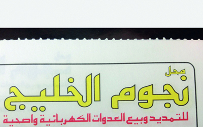 رفع محل لافتة تعبر عن نشاطه، كتب عليها نجوم الخليج «للتمديد وبيع العدوات الكهربائية واصحية»، بدلاً من «بيع الأدوات الكهربائية والصحية»، وتالياً احتوت على كثير من الأخطاء في اللغة العربية.